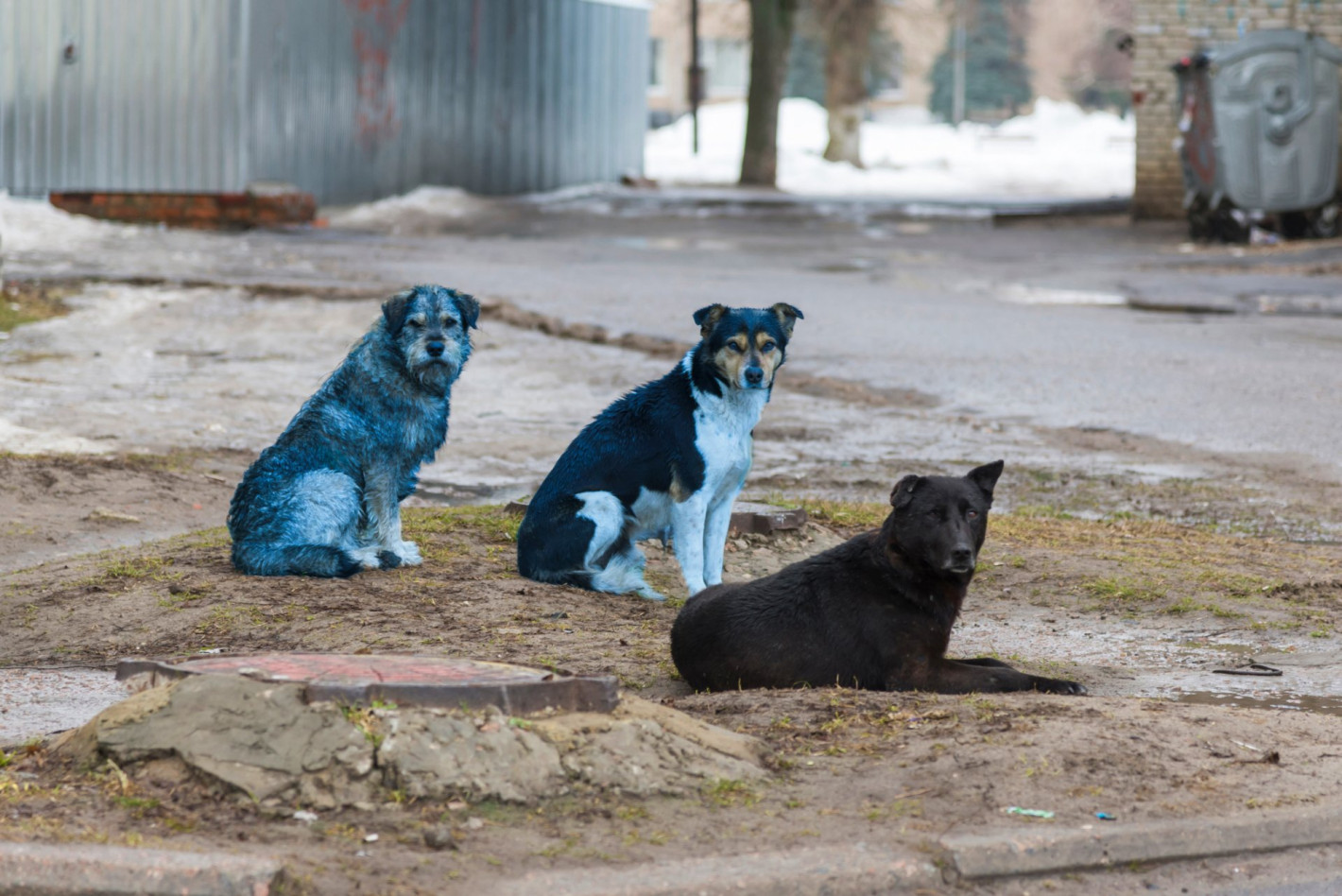 В разпространено видео се виждат няколко глутници, сред които изпъква поне едно животно, оцветено изцяло в синьо. От екипа посочват, че преди седмица кучетата не са имали подобна окраска и че причината засега е неизвестна. Доброволците се опитват да заловят засегнатите, за да бъдат изследвани, като предполагат най-вероятен контакт с химично вещество. Въпреки тревожния вид, животните изглеждат жизнени и в добро здраве.