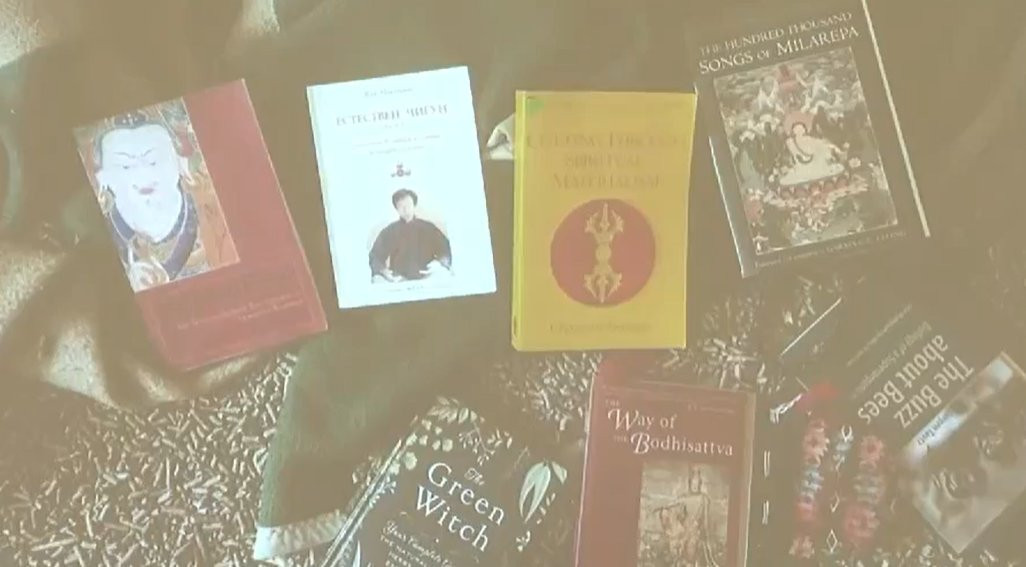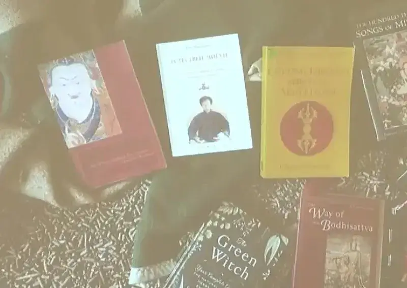 Сред заглавията присъства и "The Hundred Thousand Songs of Milarepa" - разказ за Миларепа, който в младостта си убива хора, след което се разкайва и преминава през крайна аскеза. Книгата разглежда смъртта като преход, тялото като временно явление и прераждането като неизбежно. Заложена е идеята, че чрез достатъчно страдание човек може да се прероди в по-добър живот.