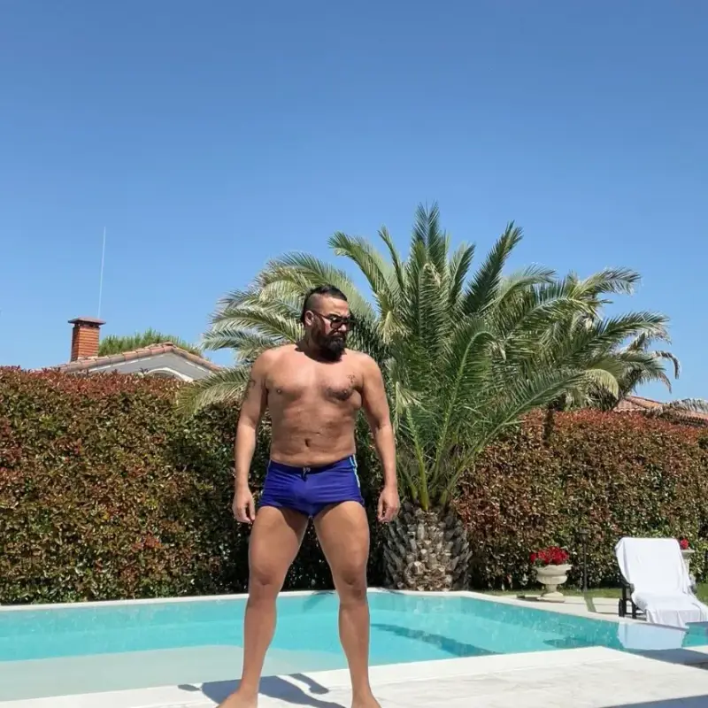 Въпреки това кралят на чалгата не се притеснява да се покаже как изглежда, при това чисто нов. Азис разпуска край басейна, където се плацика с близък приятел – младия певец Антонио.