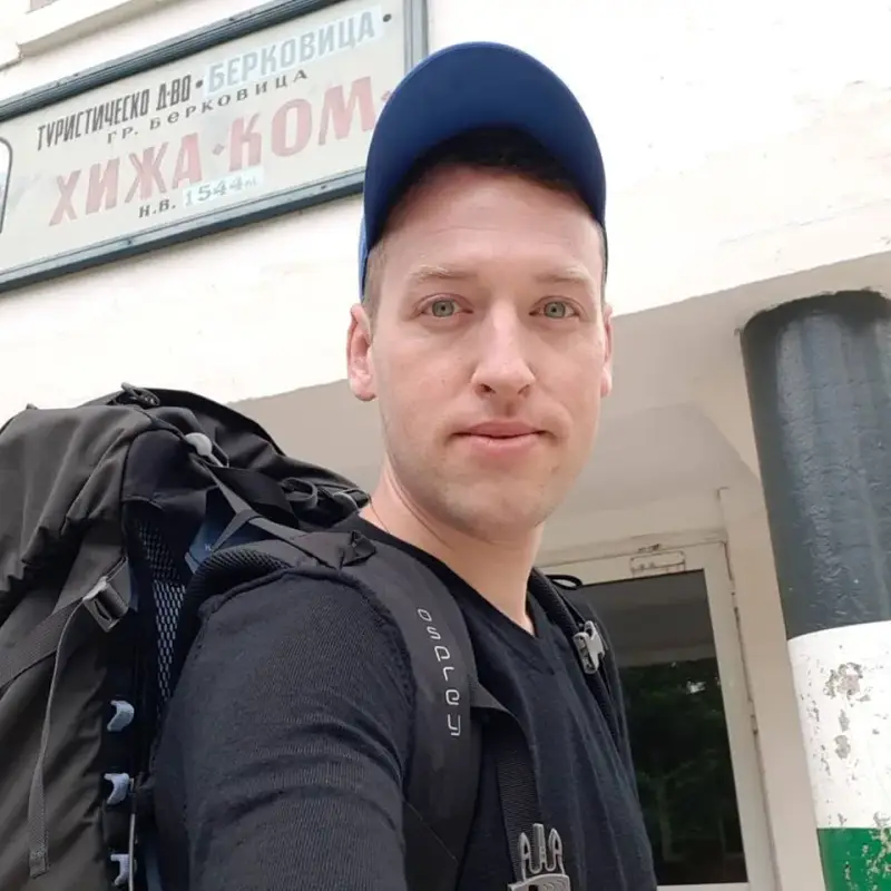 „1 ден Ком-Емине. Тръгнах в 7:15 ч от х. Ком, на връх Ком бях в 8:40ч. Взех си 3 камъчета и тръгнах към Петрохан прохода. В 13 ч. бях на прохода, хапнах картофи със сирене на барчето на прохода. Настаних се за нощувка в творческа къща Петрохан“, пише Джорджано.