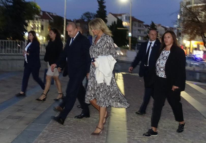 Точно преди две годинипрезидентската булка се появи със същата дреха на тържествен концерт в Държавната опера в Бургас.Тогава обаче фокусът бе не толкова върху роклята със змийска шарка, която много прилича на модел от колекция на H&M, колкото върху гипса около китката на лявата ѝ ръка.