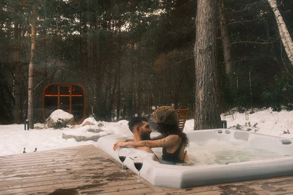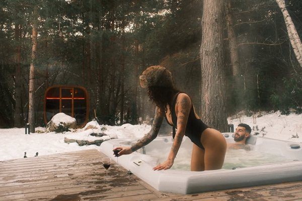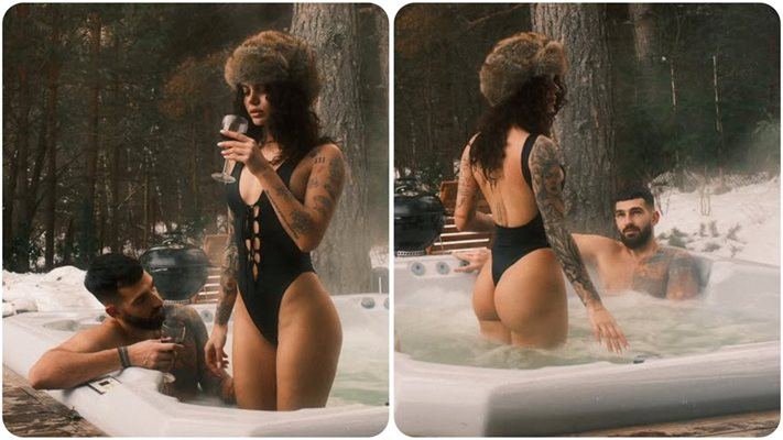 Валерия и Ивайло са някъде в планината, потопили са се във външно джакузи с гореща вода и се сгряват допълнително с вино и... страстни целувки. Дакова е облечена... или по-скоро добре съблечена, показвайки стегнатото си тяло, а потребители в нета едва се сдържат да не си посегнат. А някои и не се сдържат, убедени сме...