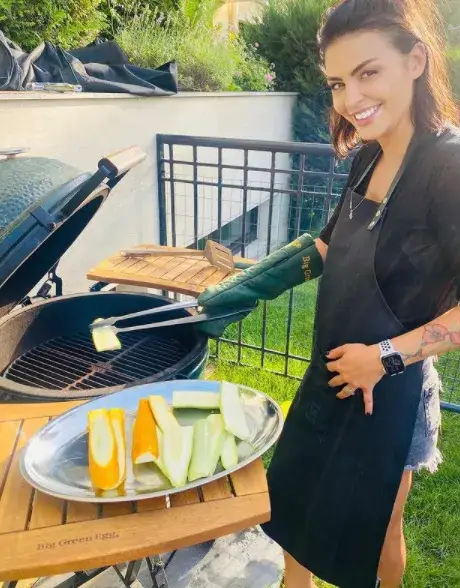 Въпреки горещините, Деси Цонева запали барбекюто в двора, за да приготви обяд за семейството си, видя HotArena.