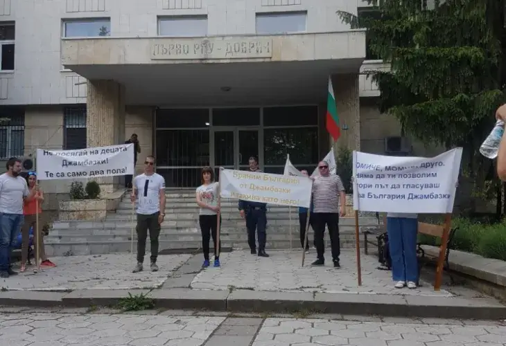 Жители на града бяха дошли с плакати, на които изразяват недоволството си от позицията на евродепутата при гласуването на Истанбулската конвенция в Брюксел. Там той не е гласувал против този документ. Затова и надписите бяха „Браним България от Джамбазки и такива като него!”, „Не посягай на децата, Джамбазки. Те са само два пола” и др.