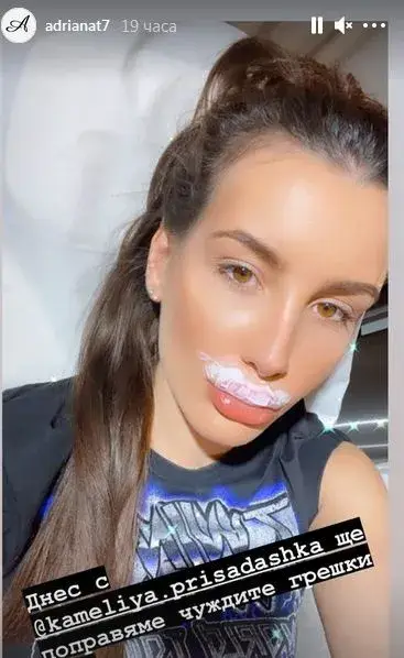 За случката се оплака самата брюнетка в профилите си в социалните мрежи. Тя признава, че заради некадърни лекари й се налага отново да се подложи на процедури, за да успее да възвърне красивата форма на устните си. Адриана показа снимка на която личи колко е подута горната й устна, макар да има специално мазило.