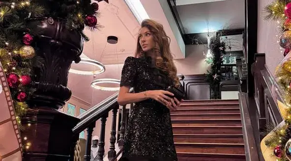 На новогодишен купон красавицата майка на две деца, бе избрала къса черна и светеща рокля, от която се виждаха безкрайните й крака.