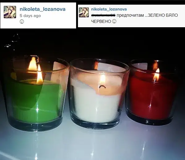 На един от най-важните празници на България – Съединението на 6 септември, водещата качи снимка в Инстаграм на цветни свещи, които образуват националното знаме на Италия. Поводът за фотото се оказа прехвърлянето на съпруга й Валери във втородивизионния италиански отбор „Тернара“.
