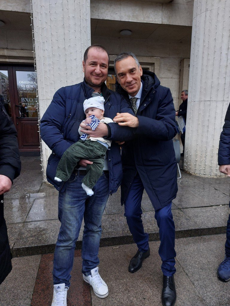 3-месечният Никола бе най-малкият именик, който се включи в традиционната "златна" снимка пред Община Бургас. Въпреки лошото време, десетки бургазлии, които носят името на Свети Никола се събраха, за да споделят празника си. Малката Никол, която е на годинка и 4 месеца позира в ръцете на дядо си Николай.