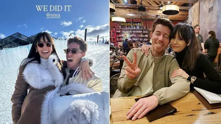 Нина е в бял тоалет, панталон и блуза, кожено палто и на високи токчета по пистите на Аспен. Дали наистина лудите млади са се взели, или тя просто се закача с последователите си, ще стане ясно скоро, но е факт, че шампионът по сноуборд, на чието предложение каза "да", е дал голямо парти на писта там, с диджей, дансинг и много песни и танци с приятели. Възможно е това да е и част от подгряващи партита на бъдеща сватба, а може и да са сключили брак тайно. Поздравления Шон, казват приятелите му и твърдят, че това е бил най-хубавият ден и би било чудесно, ако той се повтори. Други му завиждат, наричайки го голям щастливец да е близо до актрисата с български корени.