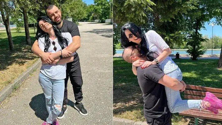 "В друг живот", пише брюнетката под първите общи фотоси на звездната двойка. на кадрите бившият футболист Славейко е прегърнал силно половинката си, която е ухилена.