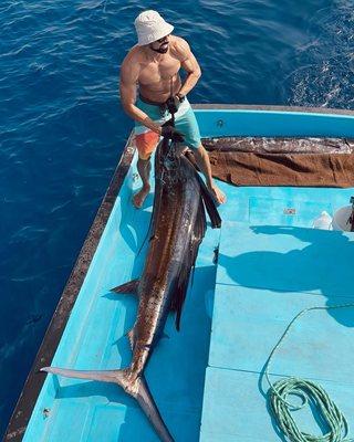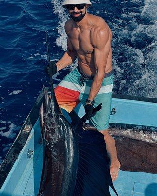 Преди около година мачото успява на улови марлин, който от мнозина е считан за най-бързата океанска риба. Марлините са като торпедо под водата и могат да преплуват 100 метра за 4 секунди. Екземплярите са популярни риби за спортен риболов в определени тропични области и са също ценени като храна. Принадлежат към семейство големи хищни соленоводни риби. Имат удължено тяло, което при по-големите видове може да надхвърли 4 метра на дължина, заострена като копие муцуна и твърда дълга гръбна перка, която се увеличава в предната част, образувайки гребен. Марлините се срещат във всички морета с изключение на Мъртво море и ловуват малки и големи риби.