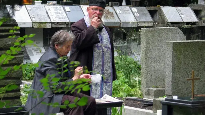 На декор от филм на ужасите заприличаха Централните софийски гробища по свечеряване миналата събота. Заслугата за това беше на скандалният отец Гелеменов. Прочутият свещеник практикуваше екзорсизъм в траурния парк по залез слънце, когато опечалените вече се бяха разотишли по домовете си.