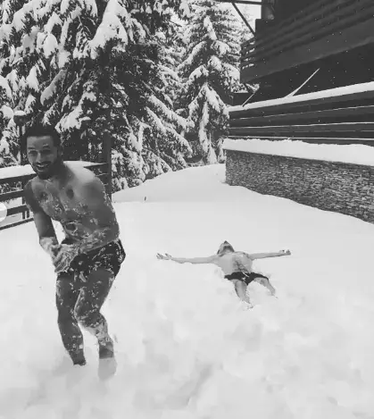 Папи показа в социалната мрежа как празнува с приятели в СПА център в планината. Певецът и писател първо се появи по халат, а после захвърли хавлията и се овъргаля гол в снега. На снимките се вижда и актуалната му приятелка – чаровната блондинка Сара.
