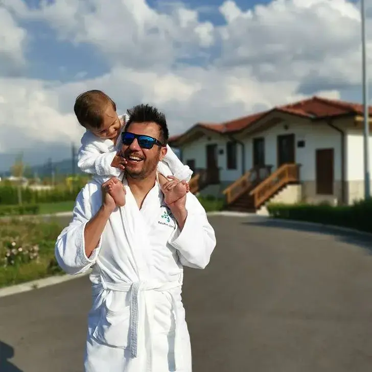 На него се вижда как синът на двойката и поетът са по бели халати на СПА почивка в Белчинския край, пише „България днес”.