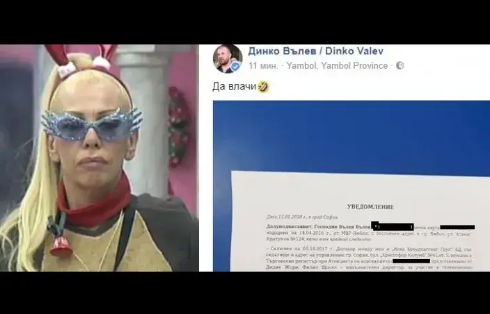 Това стана ясно от документ, който самият Динко пусна в официалната си страница във Фейсбук, като към него добави коментара: „Да влачи“.