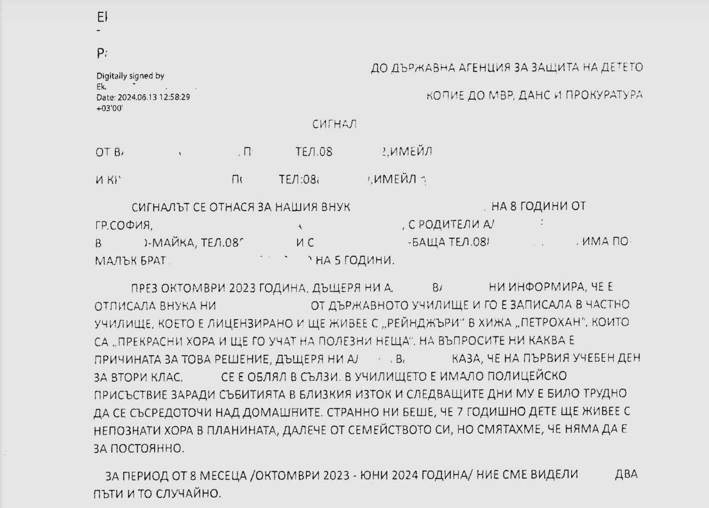 Леон разказва, че е бил много привързан към семейството си и е щастлив в Плевен. Но какво се е случило, когато е започнал да пътува с Калушев? Той е бил в едно легло с него! Сигналът от бабата и дядото е подаден на 13 юни 2024 г., след като те научават, че дъщеря им е отписала Леон от училище и ще го изпрати да живее с "рейнджъри" в планината.