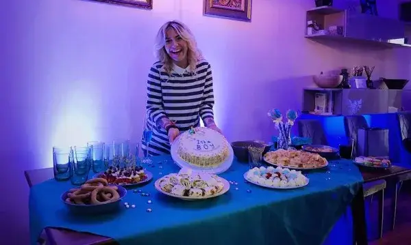 Тя дори си организира бебешко парти малко преди на бял свят да се роди отрочето й. На партито бе разрязана и прекрасна торта със син надпис, а трапезата отрупана с куп лакомства и изкушения.