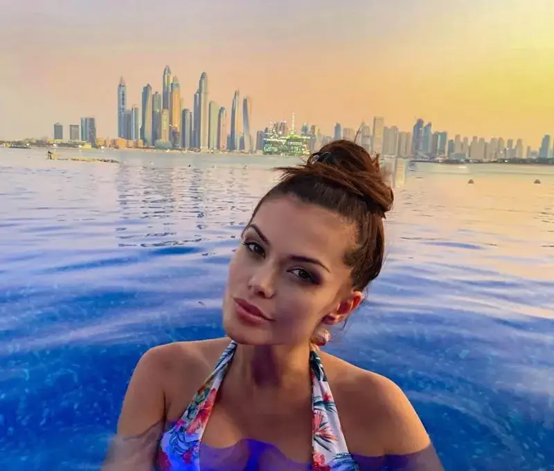 Последния кадър на звездата е от плувния басейн, кацнал буквално на ръба на небостъргача в Дубай, пише „България днес”.