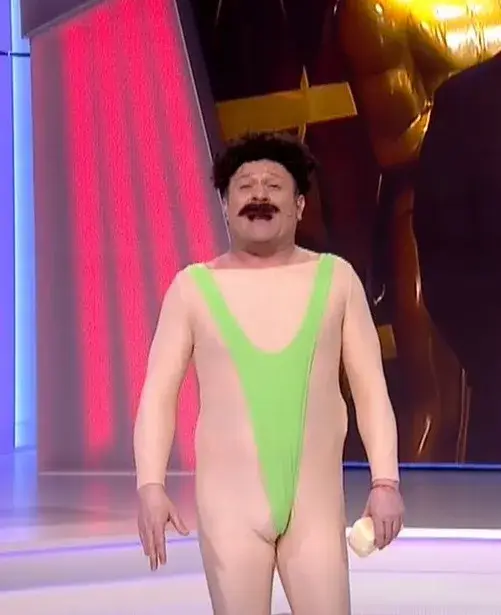 Димитър Рачков сюрпризира зрителите на вечерното си шоу в неделя вечерта, появявайки се на сцената в изрязан бански.