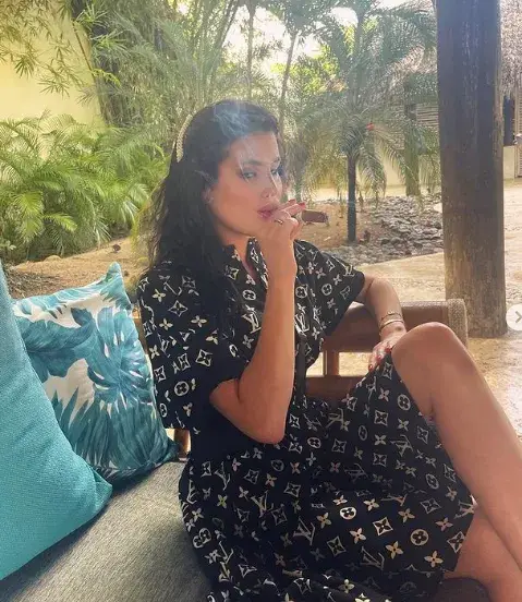 Една от най-скандалните носителки на титлата Мис България си живее живота на екзотична почивка. Редува пурите с лежането по бански и събира погледи към тялото си.