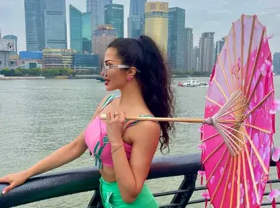 Китай се отзова Райна. Пилето на фолка обикаля тези дни из Шанхай и позира пред пагоди, фенери и небостъргачи.