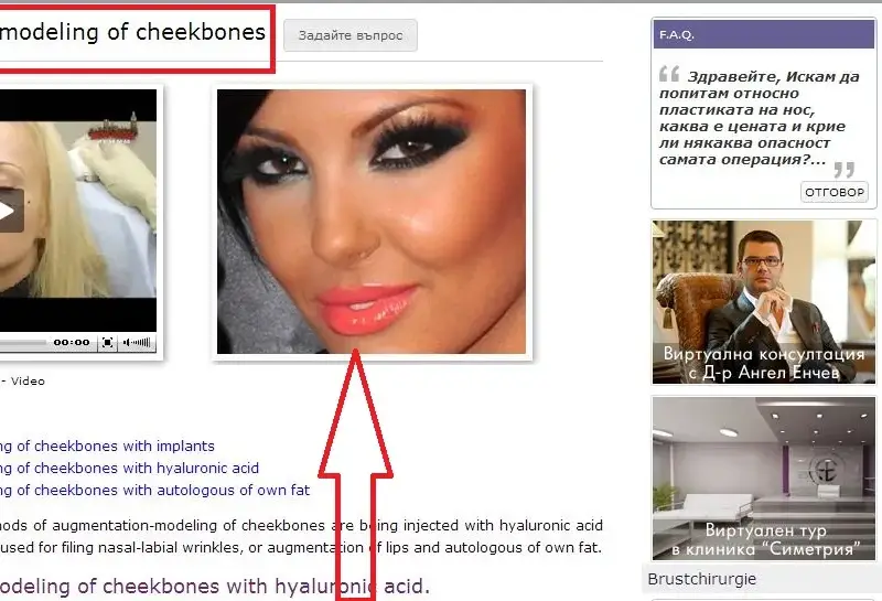 Това разкри в сигнал до Горещата арена нашият буден читател. Бърза проверка потвърди думите на информатора (вж в галерията). В действителност, д-р Енчев и Николета крият, че плеймейтката е моделирала скулите си и пред българските си клиенти хирургът не я дава за пример.