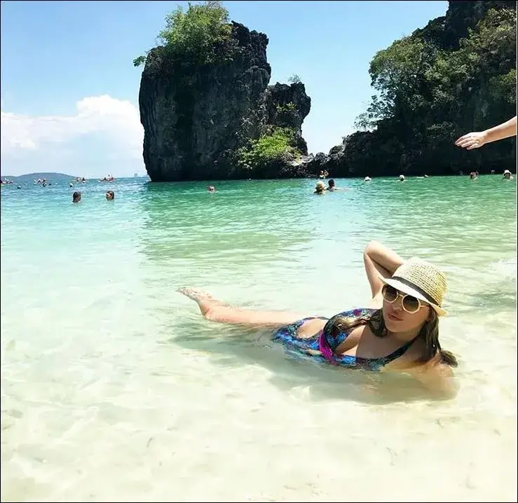 Фолк певицата смело позира катерейки се по дърветата, лягайки във водата и отърка доволно гръд в пясъка. И тъй като няма кой да я познае в Тайланд, тя доволно се забавлява.