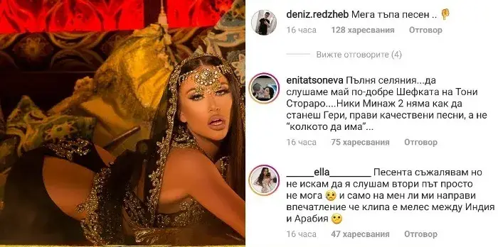 „Принципно не се занимавам да коментирам песни , но тази ме порази с тъпотията и селяндурщината си . Успях около минута да издържа на нея !!!“,