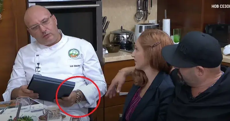 Докато коментираше готварските умения на семейните двойки през изминалата седмица, Манчев оживено ръкомахаше, а под ръкавите на бялата му престилка се показваше скъпарското тиктакащо бижу на една от най-реномираните швейцарски марки.