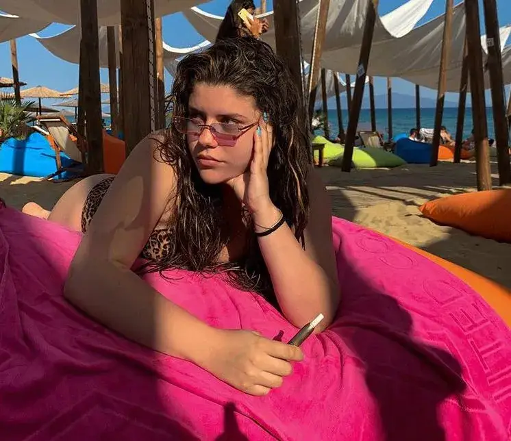 С леопардов бански и цигара в ръка, щерката на лошото момче на българското кино събира погледите по плажа, пише \"България днес\".