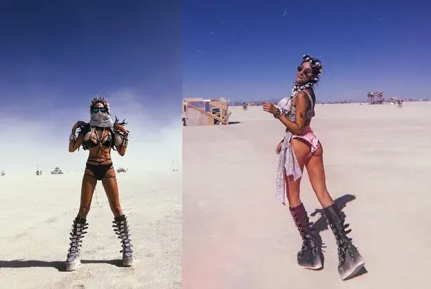 Милионерската наследница се премени във футуристична визия, за да стане част от хилядите участници в ежегодния Burning Man. Фестивалът се провежда сред пясъците в Блек рок сити – град от каравани и временни постройки, изграден специално за събитието.