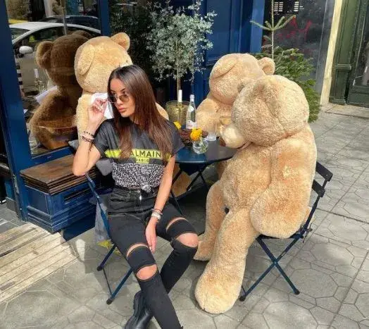 Това става ясно от снимки в социалните мрежи. Като истинска инфлуенсърка Адриана е на топа на модните тенденции да прекарва времето си с огромните плюшени мечета. Целта на поставянето на играчките в заведенията е да се избягва контактът с хора заради пандемията от коронавирус. Идеята хрумва на парижани.