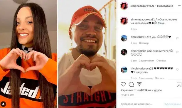 Тя публикува снимка, на която се обясни в любов на млад левент. Той се казва Д. Милушев и е полицай, показва профилът му в инстаграм. „Любов по време на карантина”, написа Симона, а гаджето й веднага отговори с :”Обичам те”.