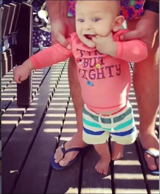 Малчуганът е едва на 7 месеца, но вече ходи и то сам. А щастливата майка сподели снимки в социалната мрежа, пише „България днес”.