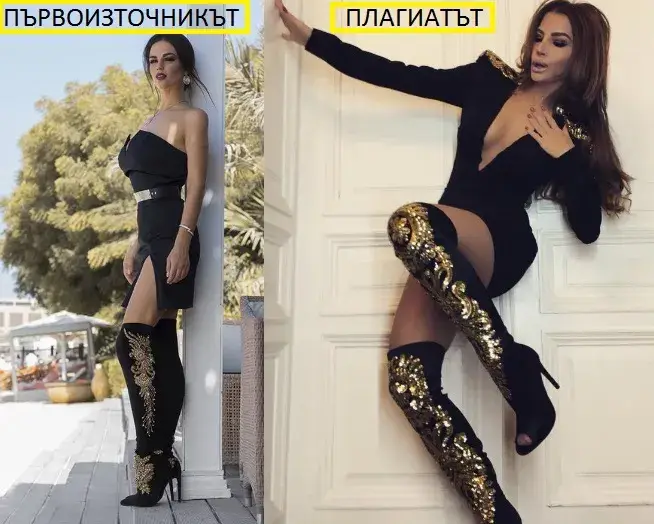 След кратка справка HotArena установи доста прилики между новата колекция на изживяващата се като дизайнера чалга певица Есил Дюран и старата на Евгения Борисова, която тя визира в поста си. Опитахме се да съберем основната идея, която създателката на Star Dust Fashion е създала миналата година и реализирана по друг начин през призмата на Есил. Кадрите може да видите в галерията по-долу.