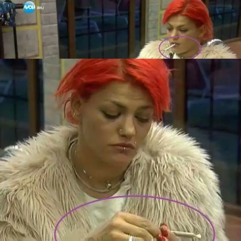 На първия тя си дърпа от най-обикновена цигара, а на втория в ръцете й се вижда свит ръчно папирос, в който май няма тютюн, а марихуана. Ако това в действтелност е така, то тогава Големия брат нарушава родните закони и уж показва една лекуваща се наркоманка, а същевременно лансира употребата на наркотици!