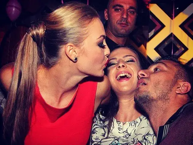 „Цялата вечер се гушкаха и целуваха с тяхната приятелка, накрая си тръгнаха заедно. Какво са правили, един бог знае“, коментират очевидци на скандалната картинка.