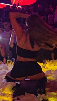 Събитието бързо се превърна в истинска сцена от Содом и Гомор. Киара направо блесна, като в един момент направи шпагат на сцената, демонстрирайки своето голо дупе. Мъжете в клуба не можеха да откъснат поглед от нея, а самата тя се забавляваше без задръжки!
