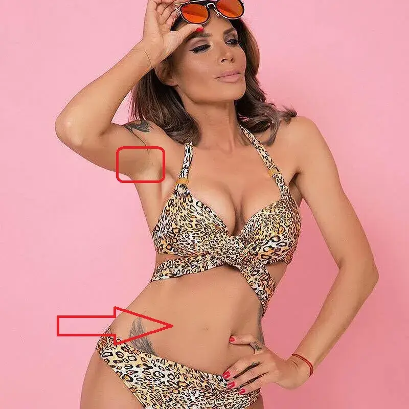 И макар че е използван Фотошоп да коригира дефектите по кадъра, с програмата най-вероятно се е заиграл някой, който хич не разбира от нея. Въпросният човек, който не изключваме да е самата Златка, е заличил пъпа й, но наболите косми под мишницата й са оставени.