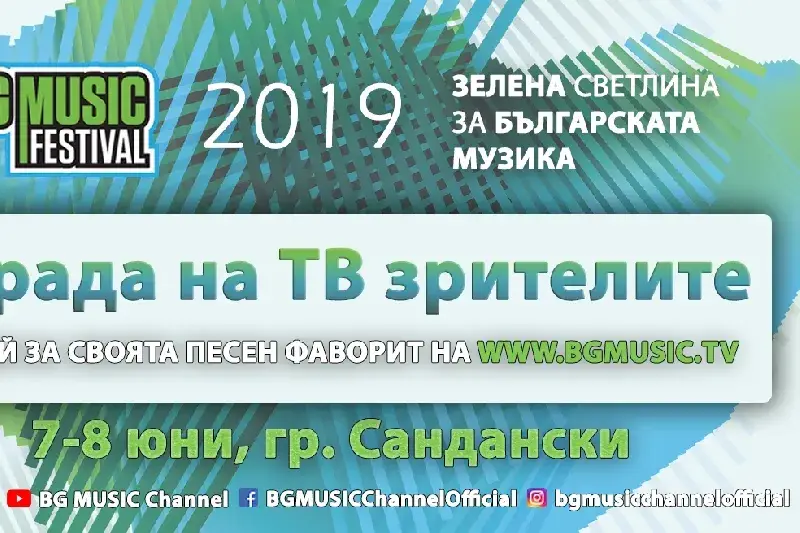 Започна гласуването за песните в третия BG Music Festival за Наградата на телевизионните зрители. Фестивалът за съвременна популярна музика ще се проведе на 7 и 8 юни в град Сандански, а дотогава всеки може да подкрепи своя фаворит чрез гласуване в сайта www.bgmusic.tv.