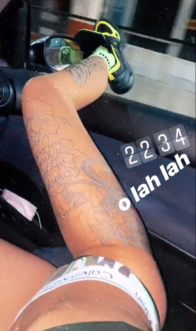 В друго кратко видео, публикувано в социалната мрежа инстаграм, ученичката не се свени да покаже как се вози само по бельо в автомобил до шофьорското място. Певицата е само по бели прашки от световноизвестна марка. Тя е вирнала голия си крак през прозореца на вратата, с което пречи на тайнствения шофьор на вижда страничното огледало за обратно виждане.