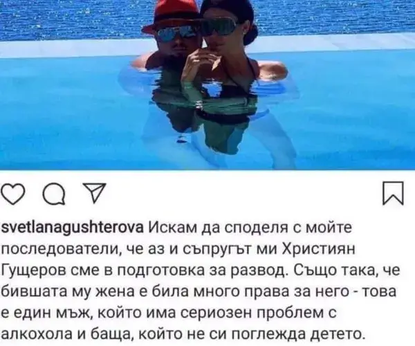 Не всеки ден се случва Фейсбук да заври, че и да кипне. Е, днес е един от тези дни, а причината - шокиращата новина за развода на Светлана Гущерова. При това съобщена лично от нея.