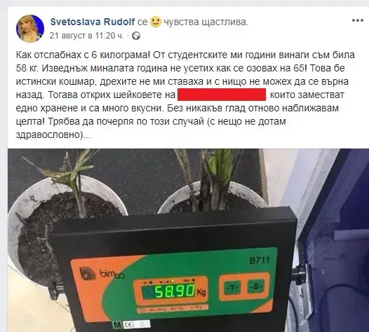 Светослава Рудолф увещава приятелите си в социалните мрежи да си купят хранителни добавки, за да отслабнат, научи HotArena.