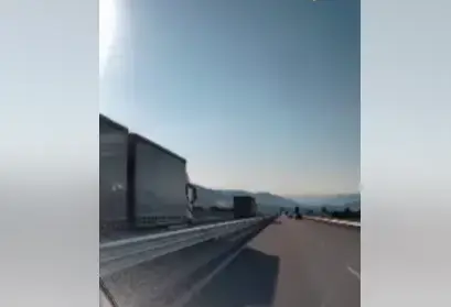 Смразяваща дъха картина на два тежки тира, които хвърчат със 100 км./час в насрещното и рискуват да пометат идващите насреща...