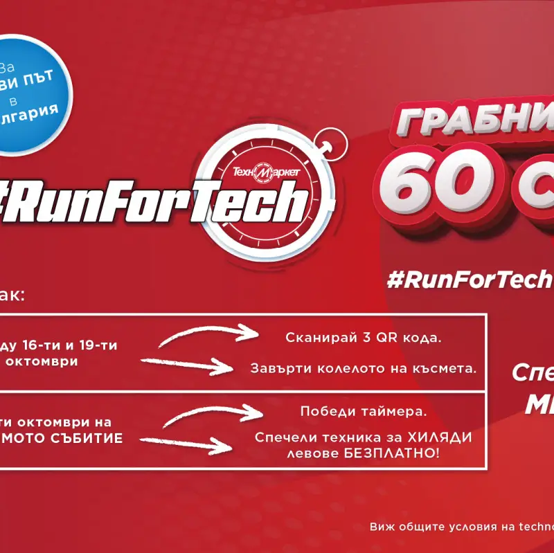 Всички подробности и условия на играта можете да намерите на technomarket.bg/rules-promotions/tm-ring-mall-runfortech. Не пропускайте шанса да промените живота си с техника за секунди!