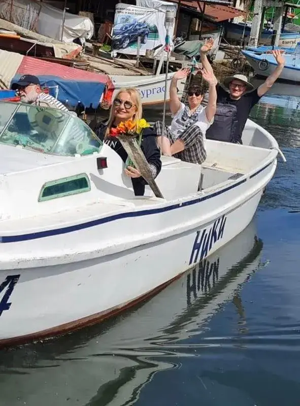 Тони Димитрова подкара малък кораб покрай рибарското селище Ченгене скеле.