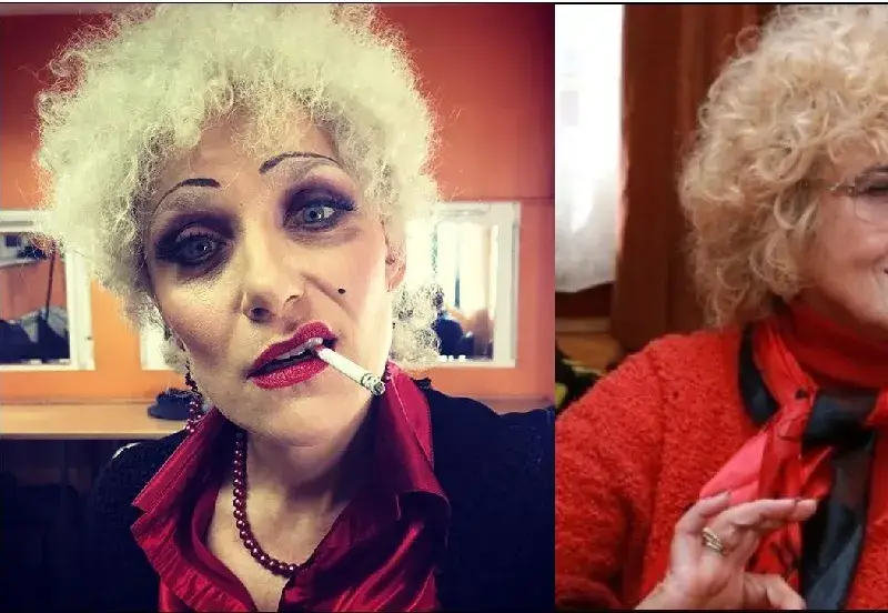 Заради нова роля Койна Русева така се е преобразила с грим и перука, че не остава място за сравнение—нейното е вдъхновение е любимата Латинка Петрова.