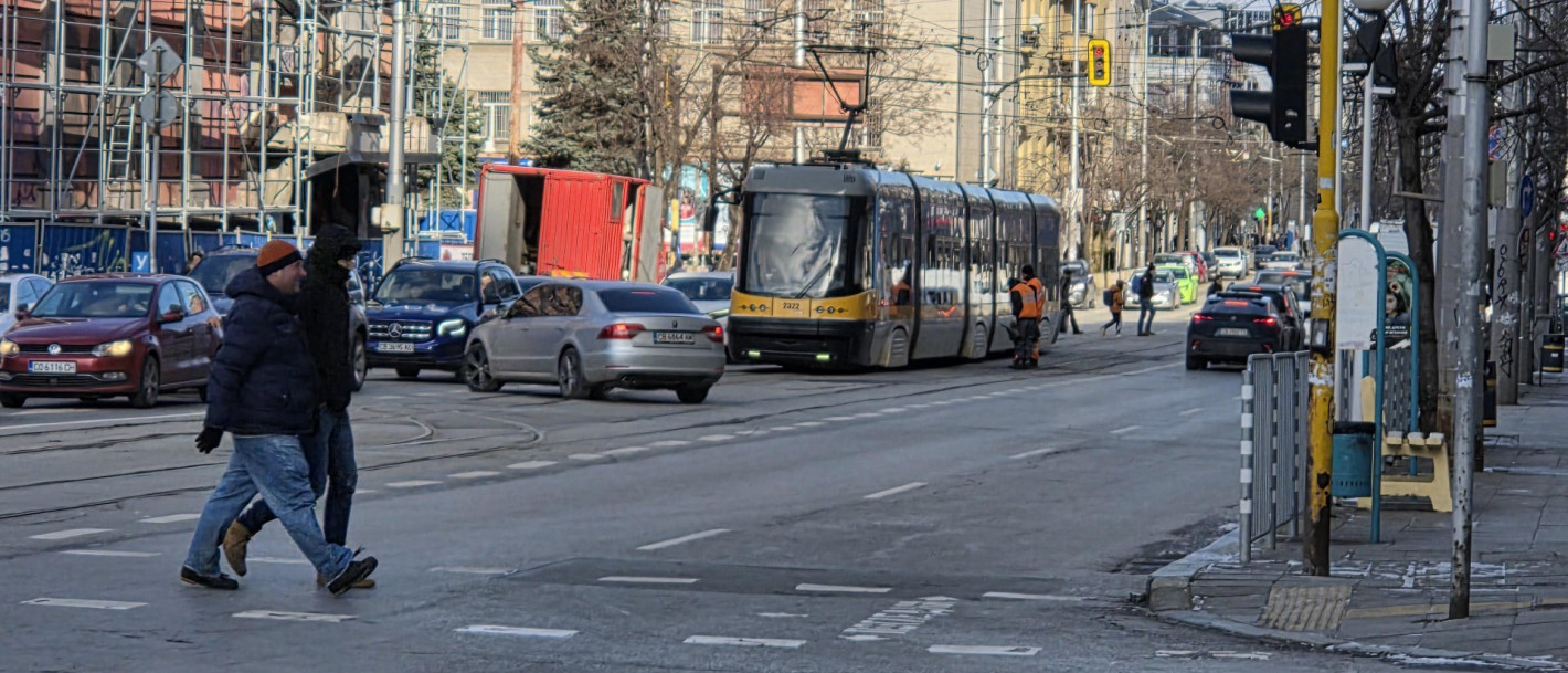 Заледени релси са причинили дерайлиране на трамвай на булевард "Христо Ботев" близо площад "Македония" в София, съобщи "Булфото".