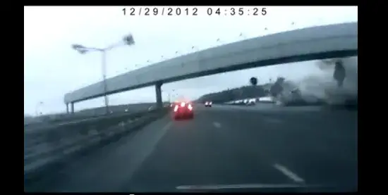 Продължителността на записа е около 30 секунди. Той е направен благодарение на камера поставена на таблото на автомобил, преминаващ точно в момента на катастрофата по магистралата.