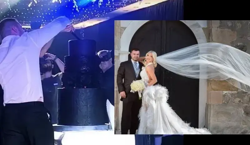 Най-шокиращият елемент на сватбата се оказа сватбената торта на няколко етажа, която беше изцяло изработена в черен цвят.